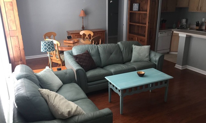 New listing. Plenty of room with 4 clean bedrooms and 2 bathrooms which feature new, clean showers. Overlooking tennis courts, the apartment is also a short walk from a sand volleyball court, weight room, game room (with pool table and video games), a hot tub and a pool. Smart TV allows easy use of Netflix, Hulu accounts or whatever your favorite entertainment medium is. Wifi throughout with cable included. This is basically four hotel rooms under one roof for a good price.