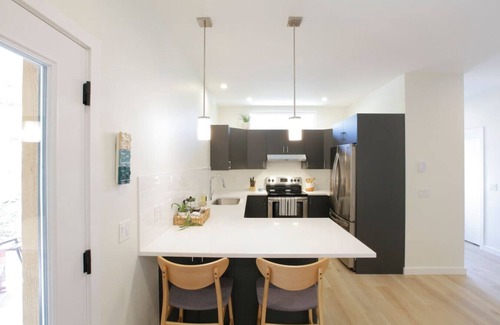 A bright spacious self contained apartment in a brand new build steps from the down town core of Tofino. On a quiet side street enjoy small town life within walking distance to shops and the towns many well known restaurants, with a well equipped kitchen, outdoor seating area, surf board storage and outdoor shower. From adventure to relaxation this stylish space is for you.