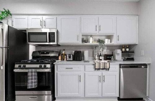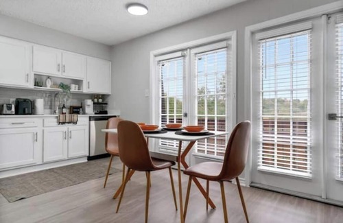 Stay with us and wake up on your comfy king-size gel memory foam mattress in our lux apt just minutes from downtown Austin! Enjoy dinner in the dining area or complimentary coffee/tea on your private balcony. An office space with a balcony view and modern kitchen amenities catered to your needs. Gather around stainless-steel appliances and spacious countertops. Your perfect Austin stay starts here!