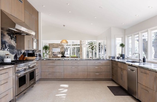 Freshly redesigned by renowned Austin designer with brand new furniture throughout the house! Retreat to Brigadoon, a mid-century resort-style ranch home set on 7 acres in Austin's Westlake Hills with sweeping city and hill views with complete privacy. The iconic Mid-Century Palm Springs inspired design is an ideal backdrop for an indulgent holiday with family or friends, a work retreat, or a family celebration. The property has a stunning private 20 foot pool overlooking the Austin skyline, an outdoor bbq, a fully equipped multi-use surface sports court to play pickleball / basketball and a home gym complete with Peloton bike, Peloton Tread, weights and yoga mats. The house has seamless indoor / outdoor architecture with decking outside all bedrooms allowing guests to enjoy the natural setting. The house comfortably accommodates up to 14 guests (in 5 bedrooms + sleeper sofa in media room) and has 5 bathrooms + 2 half bathrooms. Only a 20 minute drive to Austin's legendary music venues, restaurants and nightlife and in close proximity to Lake Austin & Lake Travis, the Hill Country and any number of parks and watering holes. We invite you to share in good company, and stay a while with Renters Club.