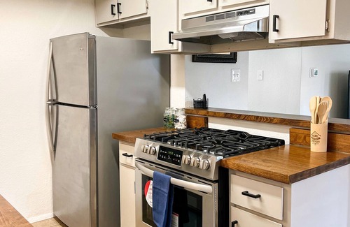 This single-story duplex, located in south austin comes complete with three bedrooms, one full bathroom, a full kitchen, laundry closet, a private fenced yard space, and a carport tucked away from the street. You will find a clean, crisp color palette along with upgraded hardware, lighting, and fixtures. The kitchen features walnut-stained butcher block countertops, large stainless steel sink, and a stainless steel appliance package. Conveniently located near IH 35, HEB, many dining options. This up and coming neighborhood is safe and less than 10 minutes away from Lady Bird Lake, McKinney Falls State Park, the Airport, downtown Austin, and 5 minutes away from Austin's best golf course.