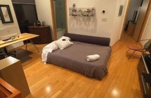 The 3rd sleeping area is in the large, upstairs, open flex space with a Design Within Reach oversized queen bed with a 3”memory foam topper that transforms into a contemporary sofa and shares the bathroom with #2 bedroom, away from the main living areas downstairs.