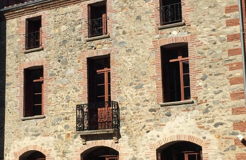 On the road to Andorra, in the heart of a typical Catalan village, with a view of the Canigou, large holiday house on 3 floors with garden, swimming pool, outdoor bar, large terrace,