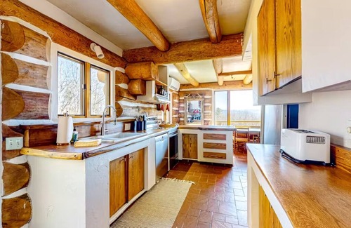 This one-of-a-kind log cabin is located on a ridgeline, with panoramic views of the White Mountains and in direct line of sight of Mt. Washington.