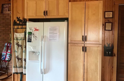 Enjoy our beautiful authentic 1950's log home on 65 feet of private lake frontage on the 'quiet side' of Silver Lake. Decorated with treasures from the family farm, the cabin is cozy and quaint with hardwood floors, handcrafted log, hickory and pine furnishings, leather sofa with loveseat and maple cabinets. The warm glow of the pine logs gives a cozy and peaceful atmosphere for sleeping 6 people.