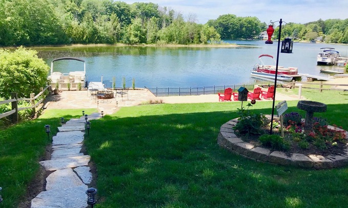 Enjoy the view of the lake from the back deck or during the hot afternoon sip a cold drink in the shady front flagstone courtyard.