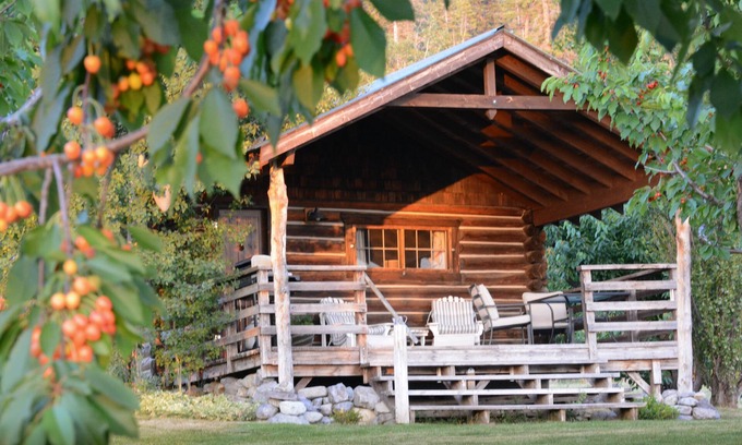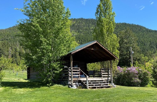 We have updated the cabin in 2021. This historic hand-hewn Log Studio Cabin Rental nestled in a 5 acre organic cherry orchard with outstanding Flathead Lake views. Fully restored with antique furnishings. The cabin is located 15 miles south of Bigfork. The cabin is not located on the water, but lake access is conveniently located about 1/2 mile away at the beautiful Yellow Bay State Park. Designed for 2 people, this 400 square foot log cabin rental has a queen log bed.