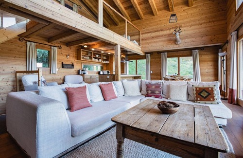 The luxury chalet boasts a private parking space and a sunny private garden and terrace with a BBQ. Free WiFi is also provided for your convenience.