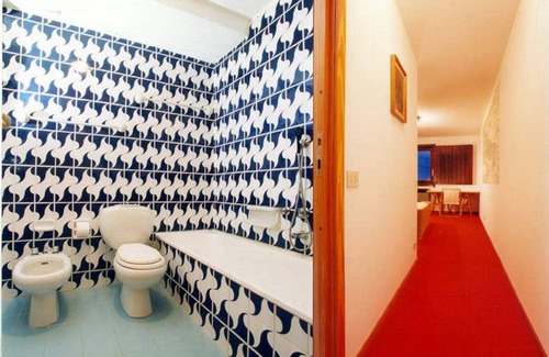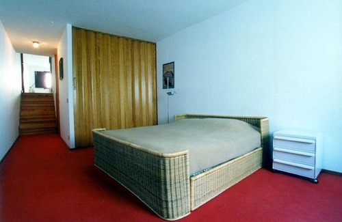Located in the hamlet of Cieloalto (2. 200 meters on the sea level), at 20 minutes walk from the center of Cervinia (and 5 minutes by car), practically on the slopes, it is an elegant flat, furnished with 1970s' supplies , in the building Schuss 1, made by Turin architect Francesco Dolza. A duplex, it has an entrance, a fully equipped kitchen, dining and living room, with a view on Mount Cervino, and, at the ground floor, there is a double bedroom and a bathroom with tub. In the living, both the sofa and the arm-chair become confortable single beds at nightime. The bedroom on the ground floor, with a double bed, can have a further one single bed, and it opens directly on the snow (or, in summer, on the communal garden). The hamlet, far from the madding crowd and very quiet, has a mini-bus shuttles, running all day every half an hour and in the evening, connecting central Cervinia with Cieloalto, which is 2 km above the village. The flat, placed among larches trees and with a magnificent view on Mount Cervino and its Grande Muraille, has a private ski-room and an underground garage (for access, ask the doorman).