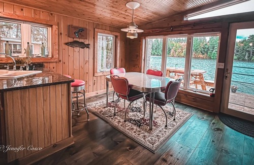 Your Tranquil Lake front home, a 5 STAR Airbnb Super Host property NEW to VRBO! It's uniquely situated on a peninsula on East Bass Lake. Water to the front and the back of the house! Sit outside, taking in the view on our tiered deck! Inside you have all the comforts of home! Subtly Luxurious! Granite counter tops. Fully stocked kitchen. Plush towels. Comfortable bed with cozy bedding. Come, relax and enjoy....This isn't your average rental!