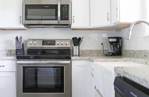 This ground-floor unit is part of a four-unit house. There are approximately five steps to enter, with hand railings provided for added convenience. Pet-friendly with a $100 fee per dog, per stay (75lb max). Sorry, no cats! Dogs who are categorized as "dangerous" or "aggressive" according the ASPCA are not allowed. Please let us know if you're bringing more than one furry friend so we can add the appropriate pet fee, as the Airbnb website does not have a spot for us to add the fee for a second dog . The fee will be added to the cost of your nightly charge. Guests must keep dogs on a leash when outdoors, and clean up after their dogs. Guests who bring a dog without notification could face penalty.