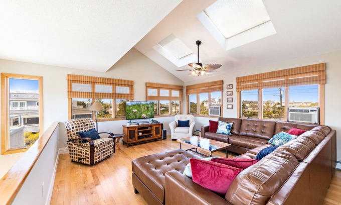 Hardwood floors through out the house. Reverse living with a great room with ocean and bay views. 2 large rooftop decks both with outdoor dining tables and chairs and comfortable chaise lounges. 1 Grill - located on Main Deck.