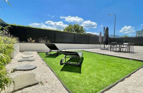 Aux Peupliers de Pradian - Alba is located in Bassens, just 13 miles from Bourget Lake and 1.5 miles from Chambéry Train Station. 1.2 miles from Fountain of Elephants and 3.1 miles from SavoiExpo, the property offers a garden and barbecue facilities. The air-conditioned villa consists of 4 bedrooms, a living room, a fully equipped kitchen with a dishwasher and a coffee machine, and 2 bathrooms with a walk-in shower and a hair dryer. Guests can take in the views of the mountain from the terrace, which also has outdoor furniture. For added privacy, the accommodation features a private entrance. A selection of options including fresh pastries, fruit, and juice are available for breakfast, and breakfast in the room is also available. Chateau des Ducs de Savoie is 2.6 miles from the villa, while Congress Centre is 12 miles from the property. Chambéry-Savoie Airport is 6.2 miles away.