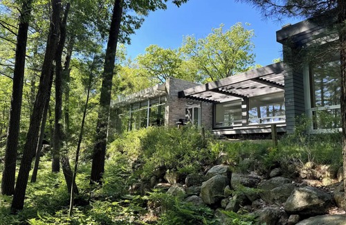 Welcome to Muskoka's ultimate Scandi-style luxury retreat! Nestled on a 25-acre private lot, this 4BR cottage offers unparalleled privacy with 1000 feet for lake front & modern amenities. Remote work is a breeze with a dedicated workspace with fast internet. Stay active in the gym, unwind in the infrared sauna, or hike in the surrounding woods. Sleeps 10 comfortably. Perfect for those seeking a luxe, secluded space for rest & productivity. Book now for an unforgettable stay!