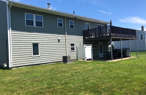 Located in the popular eastward look neighborhood, this fully furnished very clean 5 br/ 3 bath home with central air conditioning. Just 0.5 miles from the beach this beautiful raised ranch is large enough to accommodate 2 families or a family reunion, this home has a large and private backyard for everyone to play in! There is 1 deck, patio furniture and a propane grill. Enjoy a warm shower after the beach in the outdoor shower. Fully applianced eat-in kitchen, dining room, and 2 living rooms each with large screen hd tv and wireless internet. The Narragansett area offers something for the whole family! Restaurants, shopping, hiking/biking, boating/kayaking, batting cages and go-karts, ice cream parlors, golf, mini-golf, rock climbing... And the list goes on! Take a short drive to galilee to watch the fishing boats come in, take the ferry to block island or martha's vineyard, or spend the day in historic newport or mystic, ct!