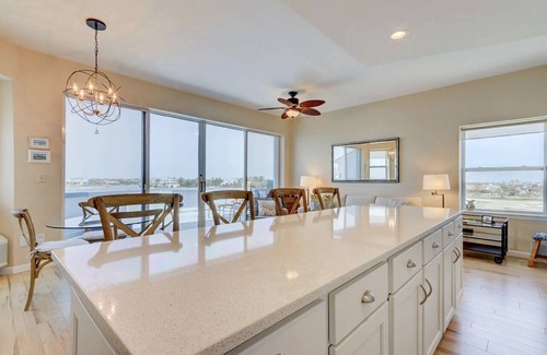Top level unit. Stunning sunsets from spacious deck. Private ocean beach access. Newly furnished with two renovated full baths. Elevator building. Furnished deck with awning. Walk or bike to town.