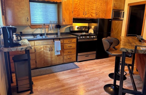 The cabin itself is 800 SQ Ft, small but unique with a very fun layout. Kids absolutely love the sleeping loft bedroom. The Master bedroom is very spacious with beautiful views of the lake. Additionally the back deck is set up with lounge furniture and a grill. This is an amazing space to just relax and enjoy why you came to visit!