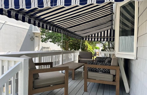 Fantastic location for sun and fun with the whole family! This home is in the heart of Avalon on the highly sought after west block of 21st street, one block from the beach and short walking distance to the business district, shops, restaurants, and Veteran Plaza. Enjoy relaxing under the canvas awning porch or in the Florida style sun room overlooking the rear yard bricked patio. Three bedrooms and two full baths on 1st floor. Two bedrooms and 1 en suite bath on second floor. Please keep in mind that all the beds come with a duvet, pillows and mattress cover - travelers will need to provide their own sheets, pillowcases, towels, washclothes and beach towels.