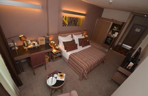 A 5-minute walk from the Gayrettepe Subway Station, this hotel offers stylish rooms and suites with air conditioning and free Wi-Fi. It has a spa, indoor pool and a fitness center. All rooms at the Avantgarde Urban Levent include interactive LCD TV and luxury bedding. The suites also feature Bang & Olufsen LCD TV and CD player, and a spa bath. A daily laundry, dry cleaning and newspaper service is available. Each morning the Avantgarde Urban Levent serves a buffet breakfast. The hotel has a terrace lounge and 2 on-site restaurants that serve international and Mediterranean dishes prepared from fresh ingredients. Spa facilities include a fitness center, pilates studio and an indoor pool. Guests can enjoy a relaxing massage or visit the Avantgarde Hotel’s saunas and Turkish baths. Avantgarde Hotel Istanbul is located in the center of Zincirlikuyu- Levent, Istanbul’s business district. It is a 5-minute walk from the Metrocity Shopping Mall and 984 foot to the closest metro station. Kanyon Mall, Özdilek Mall, Zorlu Mall and Performance Arts Center are 1 mi away. Ataturk International Airport is 16 mi and Sabiha Gokcen Airport is 28 mi away. Istanbul Airport is 29 mi from the property. The hotel is located within the walking distance to Zorlu Center.