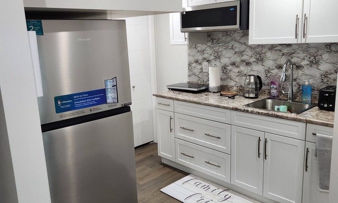 Your family will be close to everything when you stay at this centrally-located place.It's a Calm and central location close to a park, gas station, shops like Sobeyes, shoppers drug mart, dollarama, liquor mart, Tim Hortons etc. Search no more because it's a home to behold.It's a low level(basement) floor with a private entrance and a free private parking.Newly built, spacious and Well furnished two bedroom with a full bath, a rec room and fully equipped wet bar with an extra closet and other basic amenities.Infact it's just a home away from homeIt's a low level(basement) floor with a private entrance and a free private parking.