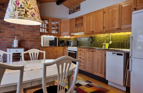 This well-kept hideaway invites you to spend relaxing days in its rooms, which are characterised by nostalgic charm. Prepare your meals together in the inviting eat-in kitchen and take a seat at the cosy dining table. Light up the fireplace and look forward to harmonious game nights or quiet reading hours on the cosy sofa.