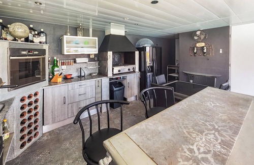 Creative and comfortable cottage with pool and outdoor kitchen.