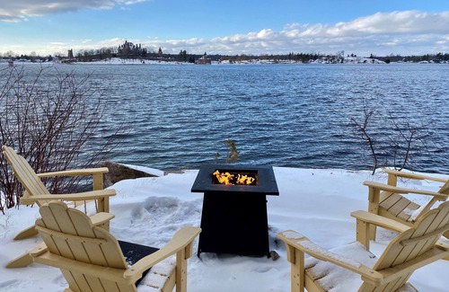 Beautiful 7BR/4BA river house located directly across from the Historic Boldt Castle. This property features 1 king bed, 4 queen bedrooms and 4 twin beds. All furniture beds and linens are new. Spacious Woodmode kitchen , gas grill and spacious dining to entertain your family & guests. Also includes deep water dockage, firepit, sandy beach area for swimming, and private jacuzzi facing Boldt Castle. You will love this prime main channel waterfront location. Walking distance to restaurants, shops and 10 minute drive to 3 golf courses .