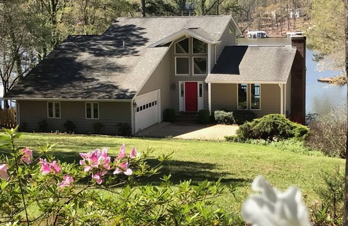 Come and take a look from Our Point of View! Take just a six minute drive to Great Creek Landing subdivision from I-85, and you will experience gentle, rolling hills, perfect for walking or biking, that lead to a beautiful lakeside home perfect for any get-away. Our Point of View is located at the entrance of a peaceful cove with a magnificent view of the greater lake.