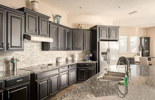 Step inside to discover a generous expanse of living spaces bathed in natural light, where contemporary aesthetics meld seamlessly with inviting touches, fostering the ultimate environment for mingling and relaxation. The state-of-the-art kitchen boasts premium appliances, an expansive island, and a capacious breakfast bar, setting the stage for imaginative cooking and vibrant social events. Each bedroom serves as a tranquil retreat, adorned with plush bedding and soothing décor to ensure a serene slumber. Venture outdoors to find an oasis featuring a warm pool and spa, alongside a cozy firepit, complemented by leisure activities including cornhole, and a putting green for evenings filled with entertainment under the stars. The outdoor area is equipped with cozy seating and strategic lighting, making Azalea Palms an enchanting setting for unwinding and creating unforgettable moments of joy and relaxation.