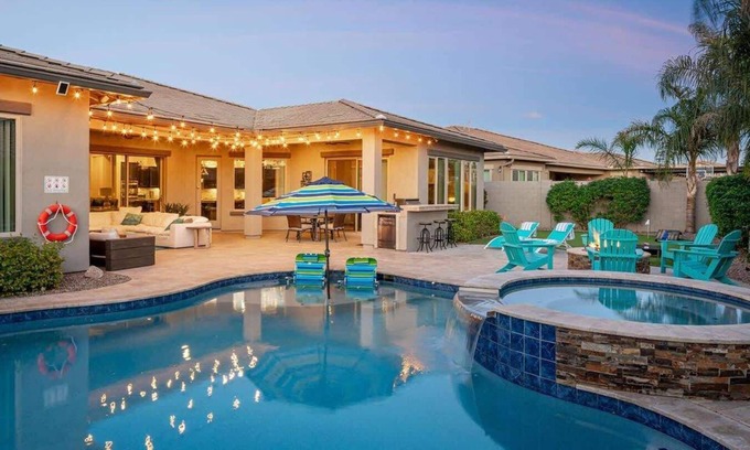 Azalea Palms: Luxe Home, Putt, Pool, Spa, Firepit is located in Gilbert. Azalea Palms: Luxe Home, Putt, Pool, Spa, Firepit provides accommodation, featuring Laundry, Balcony/Terrace, Pool, among other amenities. This House features Laundry, Balcony/Terrace, Pool, to make your stay a comfortable one.