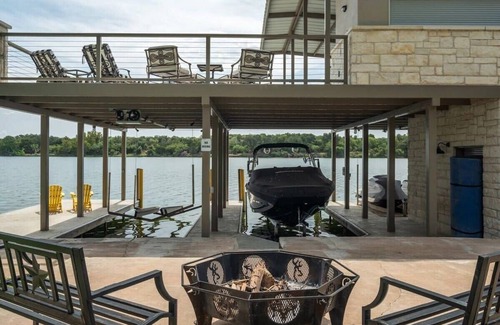 Wake up to stunning Lake LBJ views and coffee on the covered patio. Spend the day kayaking, swimming from the dock, or lounging on the sun deck. Cool off in the shared pool or play foosball and shuffleboard. Grill dinner while kids run in the fenced yard, then gather for sunset and stargazing from the upper deck. With room for up to 20 and fun for all ages, it’s lakeside living at its best.