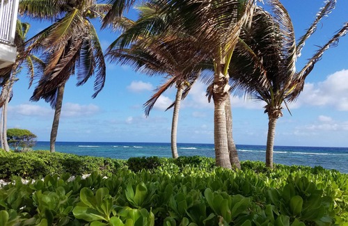 Gorgeous crystal clear waters right out the back door! Eighty feet from the sliding doors is the best snorkeling on the island, between the shore and a beautiful coral reef, in shallow water that is easy to navigate. There are endless colorful fish and beautiful coral heads for exploring. Azure Breeze is a very quiet, cozy and private place, where you may not see more than a handful of people pass by in a day! With only six two-story units, our villa offers privacy and serenity. With 3 bedrooms, 3 baths It is well appointed and comes with all the amenities you need, including a kayak and adult snorkel gear!