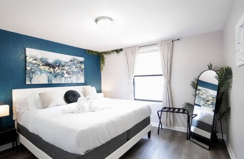 Step into Azure Oasis and let your worries melt away. This wheelchair accessible unit features a cozy king bed, a handy pull-out couch, and all the necessary amenities for a pleasant stay. Take advantage of our convenient location, just 6 miles from both downtown Columbus and Fort Moore. Whether your visit is for military service or a leisurely getaway, Azure Oasis promises an enjoyable, accessible experience.