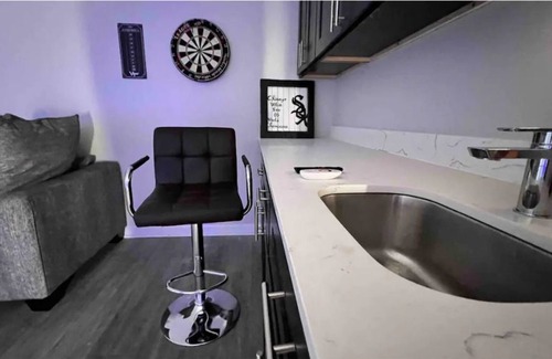 Located right off 465 this Tri-Level loft is perfect for travelers in large groups, plenty of space and parking options with a patio & a balcony. Basement cinema area and 2 75” TV with surround sound gaming for entertainment. Exercise equipment, access to pool (seasonal) dart board for the occasions. This stylish place is perfect for group trips while it sleeps 10 with 3 queen beds, 2 couches & 2 twins. WiFi access with 2 full bars one upstairs and a refrigerator downstairs for beverage cooling options.