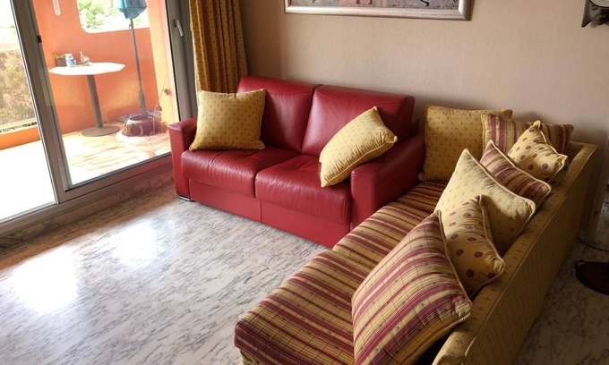 Vast two rooms 57 square meters and terrace / loggia of 26 square meters or 79 square meters in all; very bright flat south facing the sea; 1 double bed / bedroom and a comfortable sofa / bed / lounge; possibility extra folding bed / child. Equipped kitchen, bathroom / shower, linen provided + cleaning.(sheets / towels) Free WIFI.