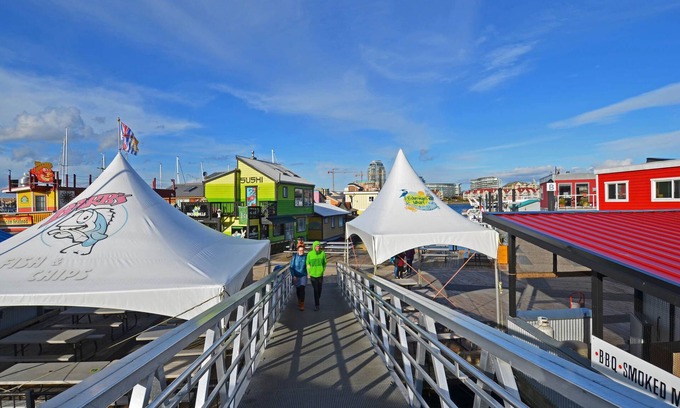 Rock to sleep in funky Fisherman's Wharf - a major tourist attraction. There are 33 whimsical colorful floating homes from tiny to large.