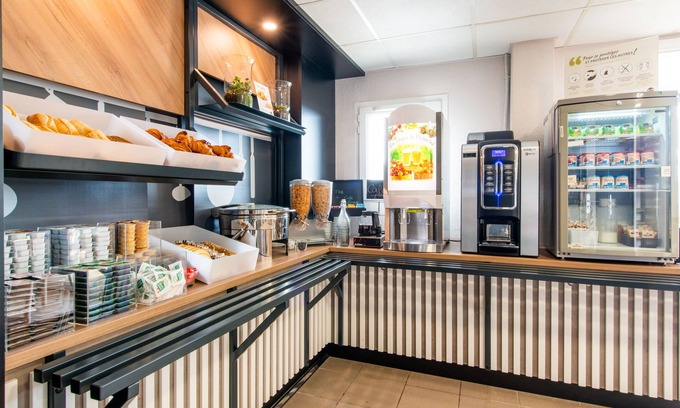 B&B HOTEL Cholet Nord offers 68 accommodations with blackout drapes/curtains. Beds feature memory foam mattresses. Televisions come with premium digital channels. Bathrooms include showers.