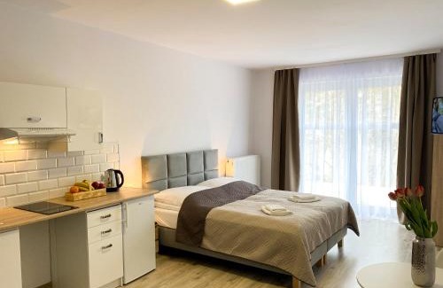 Bałtycka Osada offers accommodations in Jarosławiec, a 9-minute walk from Jarosławiec Beach and 0.6 miles from Jaroslawiec Aquapark. There's a private entrance at the apartment for the convenience of those who stay. There's a sun terrace and guests can access free Wifi and free private parking. Accommodation is equipped with air conditioning, a fully equipped kitchenette with a dining area, a flat-screen TV, and a private bathroom with walk-in shower, a hair dryer, and free toiletries. A fridge, a stovetop, and kitchenware are also offered, as well as a coffee machine and a kettle. At the apartment complex, units are equipped with bed linen and towels. For visitors looking to embark on day trips to nearby landmarks, the apartment offers a selection of packed lunches. The area is popular for cycling, and car rental is available at Bałtycka Osada. Dukes of Pomerania Castle is 12 miles from the accommodation, while Ustka Pier is 19 miles away. Gdańsk Lech Wałęsa Airport is 96 miles from the property, and the property offers a paid airport shuttle service.