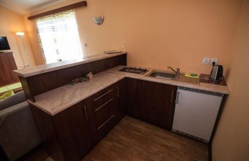 Bałtyckie Zacisze is located in Komnino, just 14 miles from Słowiński National Park and 28 miles from Jaroslawiec Aquapark. This property offers a heated pool, free Wifi, and free private parking. Ustka Promenade is 10 miles away and Ustka Lighthouse is 11 miles from the vacation home. Offering a terrace and garden views, the vacation home includes 2 bedrooms, a living room, flat-screen TV, an equipped kitchenette, and 1 bathroom with a walk-in shower. The tiled floors, fireplace, and peaceful vibe add to the ambience of the room. The property has an outdoor dining area. For guests with children, the vacation home offers a children's playground. There is a garden with a barbecue at this property, and guests can go fishing nearby. Ustka Pier is 11 miles from Bałtyckie Zacisze, while Baltic Gallery of Modern Art is 11 miles away. Gdańsk Lech Wałęsa Airport is 77 miles from the property, and the property offers a paid airport shuttle service.