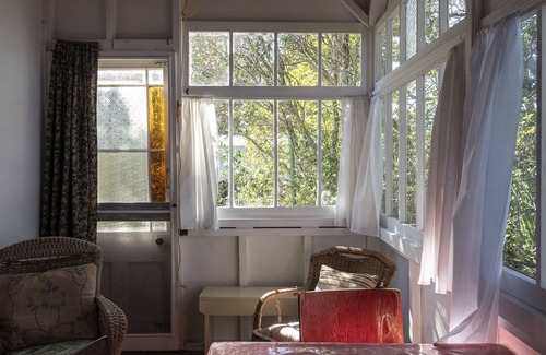 Bach 52 is a historic holiday home located near Rangitoto Wharf, thirty-five minutes by ferry from downtown Auckland.