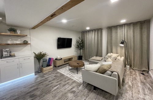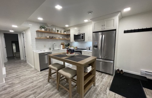 Back to the basics of relaxation at Bark & Olive; our lower executive 2 beds/1 bath suite. Modern updated furnishings will help you settle in and a fully stocked kitchen at your convenience.