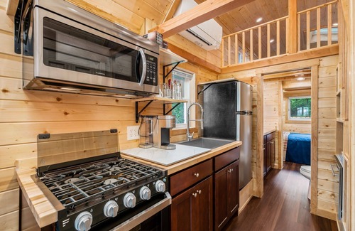 This tiny home has plenty to offer for a relaxing stay. Like our other tiny home experience enjoy star gazing from the firepit or under the sky light in the loft. This property sits on over 60 acres of private woods shared only by the three cabins on the property. There is one other cabin nearby and it separated by parking. Walking trails throughout and ready to be explored. Tons of wildlife near and far with this tiny home only 15 minutes from Hocking Hills state parks and reserves.