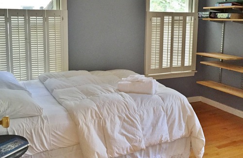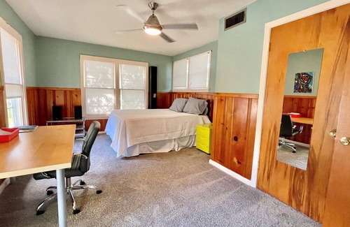 Relax on the front porch of this warm, inviting vintage home that backs to Northwest Metropolitan Park. HUGE yard with ancient live oaks. Perfect for larger groups, this awesome home has 2 bedrooms/1 bath on the 1st floor, and a "treehouse suite" upstairs with private bath on the opposite side of the home. New sofa in the family room with flat screen TV. Modern, fully-equipped kitchen includes gas cooking and microwave, with two areas to entertain. Washer/Dryer provided.