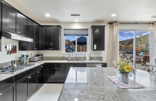 First off, the Beautiful 4 bedroom 3 full bath home on very large lot. Backyard is fully fenced with pavers, fire pit, children’s play swing set with two slides and three swings , horse shoes, and tether ball to keep the whole family entertained. Covered outdoor furniture with outdoor lights and outdoor gas BBQ with umbrella sitting areas. Home is 30 minutes to Mt Rose Resort and 35 minutes to Lake Tahoe, 15 minute to Reno Tahoe International airport, 20 minutes to Virginia City, 15 minutes to downtown Reno, and 15-20 minutes to Sparks NEVADA events such as Rib cook off, Hot August nights, Hot Air Balloon races, Air Races and many other happenings in the area. Home sleeps 16 in 13 beds/roll aways.