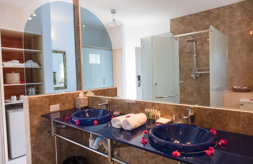 Bacolet Beach Club offers 42 accommodations, which are accessible via exterior corridors and feature iPod docking stations and minibars. Rooms open to balconies. Each accommodation is individually decorated. Beds feature Egyptian cotton sheets and premium bedding. 42-inch Smart televisions come with digital channels and Netflix. Guests can make use of the in-room refrigerators and coffee/tea makers. Bathrooms include showers and complimentary toiletries.
