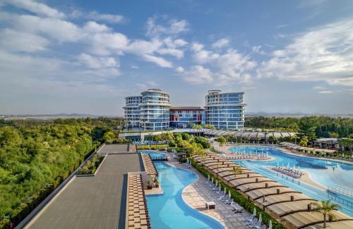 Featuring a private sandy beach area and a wooden pier, this extensive hotel offers wide outdoor pools, Aqua Park with 9 slides and a heated indoor pool. Spa and sports facilities are all available. Rooms at Baia Lara Hotel include free WiFi, a flat-screen TV, air conditioning and floor-to-ceiling windows. Safety deposit box, mini-bar and an electric kettle are provided. Private bathroom comes with a hairdryer and a shower or bath. Baia Restaurant serves breakfast, late breakfast, lunch, dinner and midnight snack, all in buffet style. A la carte restaurant with Mediterranean and steak specialties are available, and reservation is needed. Bars and snack corners are scattered around the hotel. Guests can play a game of football, basketball and tennis on the fields offered. Bowling, beach volleyball and games room are available. You can also work out in the fitness center and relax in the Turkish bath, sauna or in one of the 13 massage rooms. Antalya Airport is only 9.3 mi from Baia Lara Hotel.