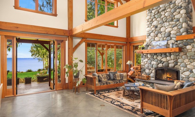 You can’t resist gathering around the 3-story fireplace and pool table, talking and laughing the evening away. All ages will be entertained with yard & board games, gourmet kitchen, yoga room, gym, birdwatching, kayaking, paddleboarding, day trips to Seattle, hiking and so much more.