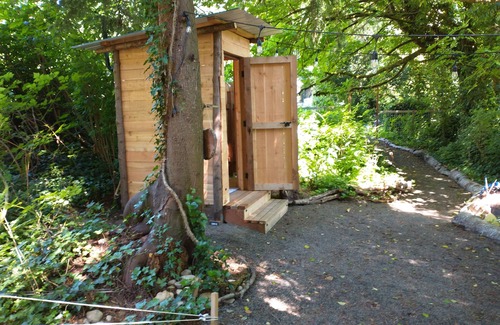 Forest meets farm in the heart of Bainbridge Island a short 15-minute walk to the Seattle ferry and quaint town of Winslow. Unwind on our small farm in a dome tent nestled under towering trees in a private setting. Enjoy your day relaxing by the seasonal (mid May-Sept) heated pool overlooking the pastures of goats, ducks, pigs and peacocks. Walk bike or drive to one of our local restaurants beaches or parks or take the ferry for easy access to the city and amazing views. A hybrid tipi style canvas bell tent sits atop a reclaimed wooden deck. The uninsulated canvas tent is outfitted with a queen size bed made up European style with feather duvet (no top sheet) and quality linens. Other furnishings include dresser, Keurig coffee/tea service, games/books, space heater, and comfy seating outfitting the inside. The real treat? a spa like private western red cedar bath house bringing you truly closer to nature with the organic design, raw wood finish, and outdoor shower under the trees. Some of the cedar used in the bath house was reclaimed from leftover timber in clear cuts of the Olympic Peninsula. Outdoor loungers, string lights and a fire pit. 9Mile Farm Forest Tipi experience may not be for everyone if you are uneasy without strong wifi, room service, a roof over your head, a lock on a door, early morning farm noises, or really nature this may not be your cup of tea. Be honest with yourself, does this listing sound intriguing or terrifying? if the latter please rethink before booking. Please understand that the farm is undergoing constant improvements & various projects may be underway during your visit. We try to keep it tidy but realistically that just isn't always possible. What we truly hope, what our vision from the beginning has been is that all our guests enjoy a unique, peaceful, handcrafted experience that brings each individual that much closer to our planet, respecting her maybe just a little bit more. 9 Mile Farm hopes to provide you with a moment or more of tranquility and a fulfilling escape from society. My family and I live onsite and most likely are available if questions arise. We are happy to greet you upon arrival and give you a small tour to familiarize yourself with the property. If this is something you would like please let us know and we will do our best to accommodate. Otherwise you won't see us unless you need us, please make yourselves at home. We do want to emphasize that the space is yours to enjoy and share (in the interest of full disclosure) with an occasional owl, deer, forest mouse, mosquito, bee, spider, snail, bat or slug because one will undoubtedly make an appearance.