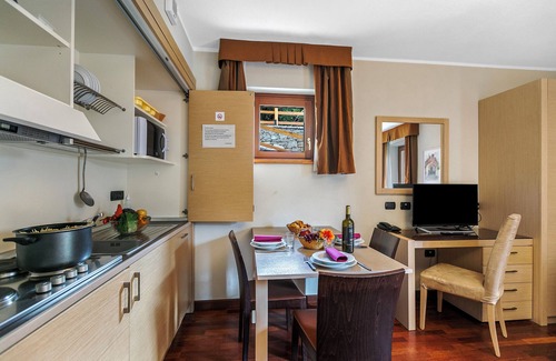 This well-equipped retreat has all the modern conveniences: Wi-Fi, central heating, Smart TV, and a laptop-friendly workspace. The kitchenette is perfect for self-catering with an induction hob, coffee machine, electric kettle, microwave, dishwasher, and fridge. Nestled among lush greenery in a sunny, quiet location, the residence offers pet-friendly options on request and a convenient lift. Ski enthusiasts will appreciate the ski storage and proximity to the ski shuttle bus, plus it is just a 10-minute drive to Jafferau slopes.
