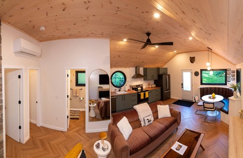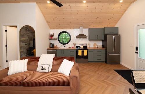 Welcome to our newly renovated stylish 2 bedroom 1 bath cabin in the heart of Bala Muskoka! Brand new cedar barrel sauna installed January 2025! Nestled on 1.5 acres with a beautiful pond and located across the street from the boat launch and Lake Muskoka, this mid-century modern cottage is perfect for unforgettable memories. Cozy up in the serene setting of our property or enjoy being close to all your favourite amenities and activities in Bala.